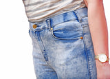 Made with premium organic cotton and engineered with led-free hardware, 1800 super stretchable Skinny jeans are designed to provide you the ultimate comfort while you look sharp. These mid-rise jeans are built to give you a perfect fit and freedom to move. Featured with four pockets, these Light-blue drizzled jeans are perfect for everyday use. This 1800 Series Jeans belongs to our designer jeans collection. It's designed with sophistication and perfection in mind.